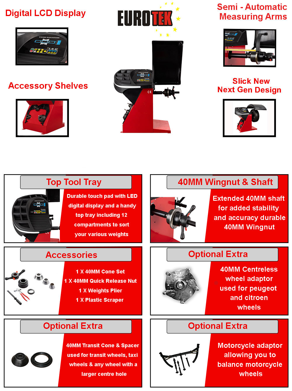 This is the redats Superspin MK2 semi automatic wheel balancer, it is the next generation wheel balancer it is a motorised wheel balancer with semi-automatic data input so you don’t have to spend time manual entering all of the data you only have to input the width of the wheel with the Superspin MK2 wheel balancer.